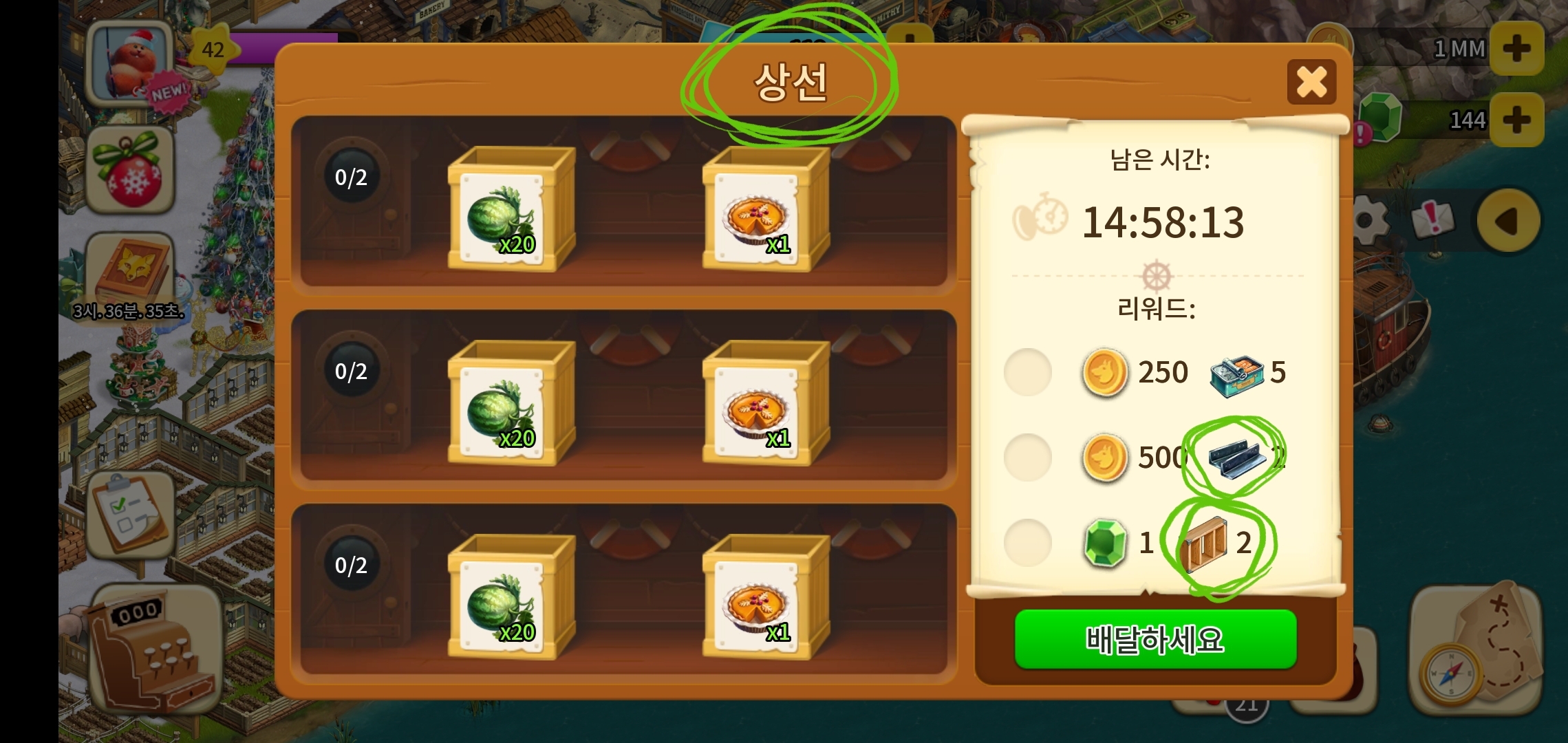 보상으로 골드, 에너지, 재료물품, 에메랄드 등을 줍니다.